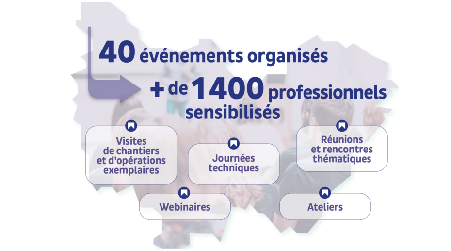 Tout au long de l’année, le Pôle énergie a proposé de nombreux temps d’échanges à destination des professionnels : réunions et rencontres thématiques, journées techniques, visites de chantiers, webinaires ou encore ateliers.