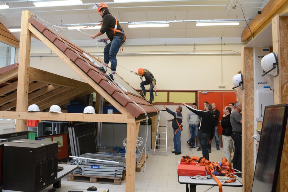 L’une des solutions choisies a été de faire appel à de nouveaux partenaires privés de formation, parmi lesquels les sociétés INTELLIBAT à Offemont (90) et STARENCO (21), membre fondateur de l’AFCB Solaire, ou, bien encore, l’Institut national de l’énergie solaire (INES), au Bourget du Lac (73), acteur de référence disposant au panel important de formations qualifiantes dans le domaine du photovoltaïque. Cette offre privée vient compléter l’offre publique déployée sur les plateaux techniques et permet aux professionnels, quel que soit leurs niveaux, de l’installateur au technicien d’étude, d’accéder en local à des formations courtes innovantes.