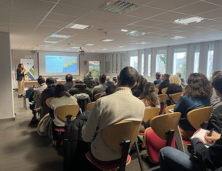 Emmanuelle Bertrand, responsable du service maitrise d’ouvrage de la ville de Pontarlier et de la Communauté de Communes de Grand Pontarlier (CCGP) a présenté le projet de réhabilitation de l’Hôtel d’entreprises « Belle Vie » à Houtaud, un bâtiment de 6000 m². Près de 8 tonnes de matériaux (cloisons modulaires, dalles de faux plafonds, revêtements de sol, sanitaires, etc.) ont été réemployées in-situ, atteignant un taux de réemploi de 1,6 %. Un chiffre modeste, mais révélateur du potentiel encore inexploré du réemploi, qui ne concerne aujourd’hui que 1 % des matériaux de construction.