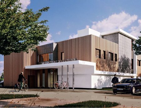 Le projet offre des espaces de travail et d'accueil lumineux et chaleureux où les matériaux naturels sont omniprésents.